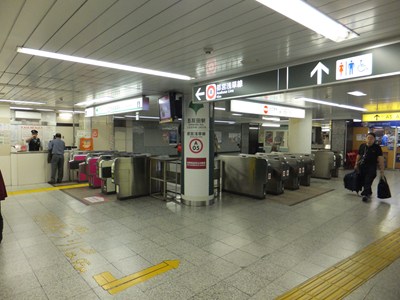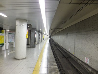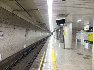 島式1面2線の単純な線路配置で、改札口は2か所、出入口は7か所あります。地下通路は広く、出入口のひとつはJRの駅に直結しています。