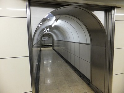 ホームの部分にもシールド工法が用いられていて、単式ホームを二つ背中合わせにしたような線路配置です。改札は1か所、出入口も2か所しかないなど、利用客に合わせて設備も小ぢんまりとしています。