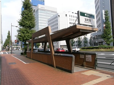 宝町駅は都営浅草線の駅です。東京駅の南東にあり、東京メトロ銀座線の京橋駅とは目と鼻の先の距離にあります。