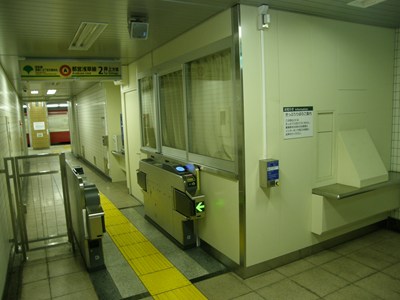 A7出入口は2010年末に設置された出入口で、エレベーター専用の出入口です。押上方面ホームに直接接続する形で改札が作られていますが、通路は細く、写真でもわかる通り自動券売機さえ設置されていません(代わりにインターホンが付けられています)。