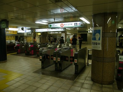 雷門方面改札のそばには銀座線の改札口があり、両線を乗り換えるときにはこちら側の改札を使います。