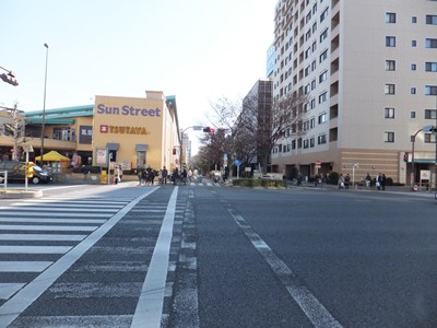 水神森交差点から、砂町線跡はまっすぐに伸びています。