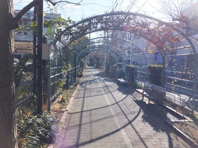 昔大島三丁目停留所があったあたりには緑のトンネルの土台があります(ただし場所はあまり関係ありません)。