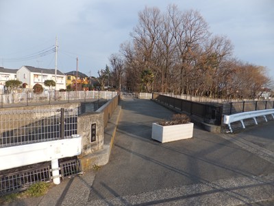 残堀川と交差しますが、橋梁は変な方向を向いていて、架け替えられたことがわかります。