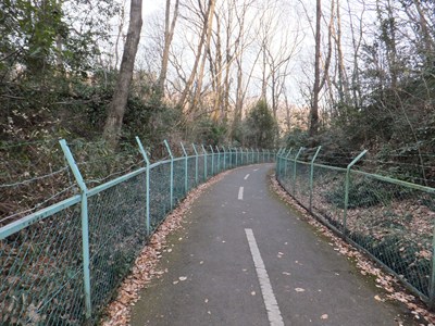 自転車道が林道のような雰囲気になります。人通りは少ないです。