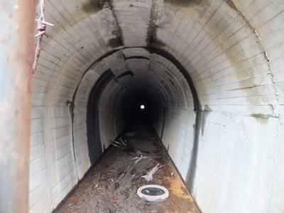 2号トンネルの先、3,4,5号とトンネルは続きます。最後の5号トンネルは、抜けた先が貯水池内のため閉塞されています。