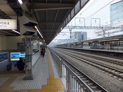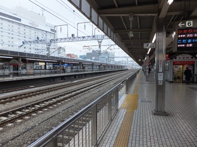 新幹線ホーム 左:東京方面を望む 右:新大阪方面を望む