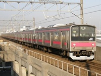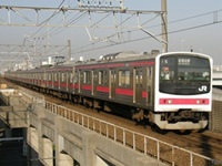 | a 205系はJR京葉線で使われる電車で、国鉄〜JR東日本・JR西日本にかけて首都圏や京阪神地区に集中投入された通勤電車です。京葉線には東京駅延伸開業の1990年から投入されました。 京葉線用の全17編成のうち5編成は山手線などからの転属車で、残り12編成は京葉線全通に伴い導入された編成でほかの205系とは異なる個性的な顔立ちで、異色を放っています。 帯色はワインレッドで、車内の座席モケットなども京葉線独自のものに交換されています。 |