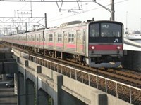 左上から順に◇ケヨ1編成、◆ケヨ2編成(海浜幕張にて)、◇ケヨ3編成、◇ケヨ4編成、◇ケヨ5編成、◆ケヨ6編成(撮影地不明、二俣新町にて?) 白いマスクに丸くて横に並んだライトという、それまでの205系の顔(下の5編成と同じ)と大きく違うデザインの顔が使用されています。 編成写真‐転属編成すべて舞浜にて、蘇我方より