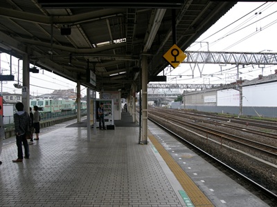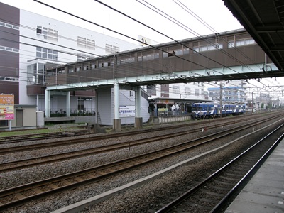 快速線を跨いで西側に向かう跨線橋があり、その途中に竜鉄の駅があります。駅ビルは最近できたもので、それまでは吹きさらしの跨線橋が西口まで続いていました。