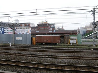 駅の西側には鉄道用品という会社があり、そこには看板として貨車が留置してあります。枕木などを本当に売っている会社らしいです。