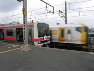 | a [葛西臨海公園駅 かさいりんかいこうえんえき Kasai-Rinkai-koen station] 葛西臨海公園駅はJR京葉線の駅で、その名の通り葛西臨海公園のすぐ前にあります。 島式ホーム1面2線の外側には通過線があり、一部の各駅停車や武蔵野快速(土休日)は当駅で特急や通勤快速を退避します。葛西臨海水族園最寄駅なのでそれを知らせる看板があります。 |