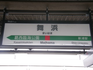 | a [舞浜駅 まいはまえき Maihama station] 舞浜駅はJR京葉線の駅で、言わずと知れた「ねずみの国」の最寄駅です。 駅名の舞浜とは本家「ねずみの国」のあるマイアミビーチ市からとられていて、舞は「マイアミ」のマイ、浜はビーチの和訳です。 島式ホーム1面2線の駅で、駅全体に他の駅とは違った少ししゃれたデザインが施されているとともに、ホームの東京方は京葉線の有名撮影地として知られています。a |