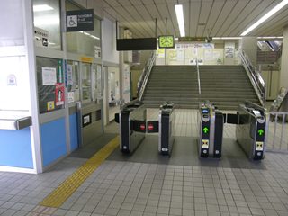 駅舎内の自由通路は広々としていますが改札はかなり小さめです。また、改札を入った後中2階のようなところを経て各ホームに向かう構造です。