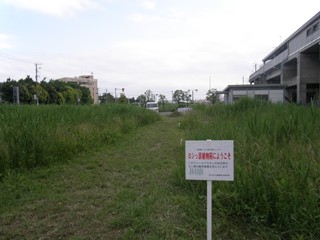 南口の駅前には真新しい商業ビルが建てられ、コンビニやホテルが入居しています。 また、それと反対側にはヨシの生い茂る原っぱが広がっています。