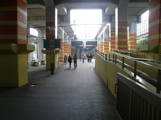 南口は天井が高い開放的なデザインで、駅前には団地やIKEAがあります。IKEAと奥の高層マンションがあるところは昔、ザウスという屋内型スキー場があったところです。 また、ロータリーは駅から離れたところにポツンとあります。南口駅前はなぜか建物が駅を避けるように配置され、駅前がのっぱらになっているのが特徴です。