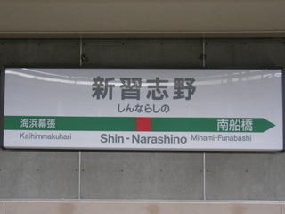| a [新習志野駅 しんならしのえき Shin-Narashino station] 新習志野駅はJR京葉線の駅で、その名の通り習志野市内にあります。ただ、習志野市の中心駅は昔からずっと変わらず津田沼駅で、本家「習志野」駅は隣の船橋市内にあります。実は習志野という地名は習志野市北部や船橋市東部一帯にまたがる地名で、当駅の駅名は「新たな習志野市の玄関口」というような意味が込められているのだと思われます。 京葉車両センターの最寄駅なので、相対式ホーム2面2線の間に折り返し可能な島式ホーム1面2線を挟んだような特殊な配線をしていて、多数の始終着列車があり特急などの退避も行われます。 |