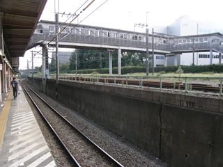 [北府中駅 きたふちゅうえき Kita-Fuchu station] 東京都府中市 北府中駅はJR武蔵野線の駅で、東芝府中事業所の最寄駅です。 もともと中央線国分寺駅から東京競馬場前駅への支線の途中駅として設けられていた駅で(中央線支線は武蔵野線開業時に廃止、北府中駅は武蔵野線所属になり、東京競馬場前は府中本町に統合された)、当初から東芝社員向けの駅という性質を帯びていました。そのため、現在でも東芝関係者専用の出入口があったり、駅から出る東芝の専用線があったりします。 |