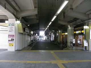 改札は高架下にあり、珍しく改札上にも駅名標が出ています。目の前には商店のある通路が続いていて、先には西口があります。