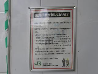 [東川口駅 ひがしかわぐちえき Higashi-Kawaguchi station] 埼玉県川口市 武蔵野線の駅は高架区間にあり、駅舎は高架下に設置されています。島式ホーム1面2線で、現在はバリアフリー工事などのため改築中です。 |
