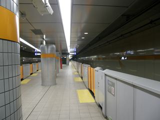 [東川口駅 ひがしかわぐちえき Higashi-Kawaguchi station] 埼玉県川口市 埼玉高速鉄道の東川口駅は地下にあり、島式ホーム1面2線です。ホームドアや駅構内に使われているテーマカラーはオレンジ色で、おそらく武蔵野線を意識したのだと思われます。 |