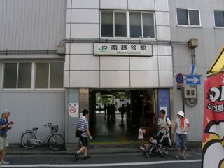 [南越谷駅 みなみこしがやえき Minami-Koshigaya station] 埼玉県越谷市 南越谷駅はJR武蔵野線の駅で、東武伊勢崎線新越谷駅との連絡駅です。東上本線と乗り換えられる北朝霞駅と同様に、なぜかあとからできた東武鉄道の駅は別の駅名を名乗っています。 東武との乗り換え出口が南口である点、反対側の北口がかなり小さい点など北朝霞駅と似たところが多い駅です。相対式ホームの2面2線で、駅の東側には越谷貨物ターミナル駅があります。駅周辺は住宅地ですが、南側を中心に商業施設も充実しています。 |