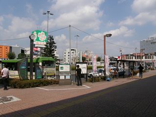 南口駅前 南口駅前もロータリーになっていて、金の鯰(なまず)の親子の像があります。