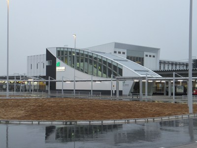 東口も西口とほぼ同じデザインの駅舎ですが、出口と改札の間で一般道を跨ぐという特徴があります。