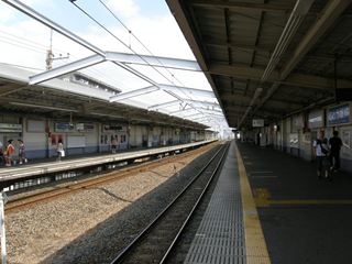 相対式ホーム2面2線の駅で、旧武蔵野操車場の東端に位置しているため、吉川と同じく相対式ホームの間が扇形に広がっています。