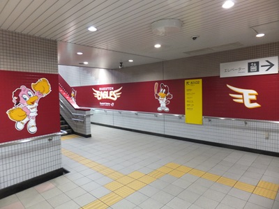 駅構内にはイーグルスのマスコットなどが多く描かれている。