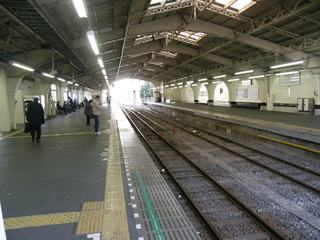 駅は京浜東北線電車の地上ホーム1面2線と、鶴見線の高架ホーム2面2線に分かれ、2路線の間には連絡改札があります。このような構造になった理由は、両線の成り立ちが大きく違うことにあります。京浜東北線側はもともと官設の東海道線上に1872年に駅が開設されたのが始まりで、その後東海道線支線(通称品鶴線:横須賀線が通る線路)や南武線貨物支線、武蔵野線(通称武蔵野南線:府中本町以南も武蔵野線は貨物線として伸びている)などが集まる駅となっています。それに対して鶴見線の駅は浅野財閥系の私鉄、鶴見臨港鉄道が1930年に延伸してきたのが始まりで、その後1943年に国有化されて現在に至っています。そのため今でも鶴見線のホームは他のJR駅とは一線を画す雰囲気で、高めの天井が私鉄のターミナル駅風の雰囲気を醸し出しています。 |
