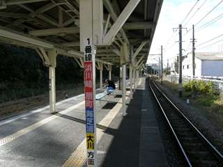 駅舎は3つに分割されたような特徴的なデザインで、オレンジ色の屋根瓦が印象的です。 駅前はすぐにJFEの関連の建物があり、その横には食堂もあります。 改札は無人ですが、事務室は乗務員詰所として使われています。 市終着駅ではありますがホーム1面2線のみです。ホームの屋根は骨組みだけ木造です。 駅舎とは構内踏切で連絡しています。 駅の鶴見方には車庫へ向かう渡線が見えます。