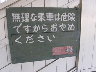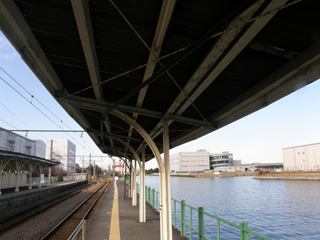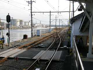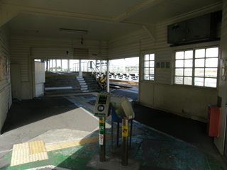 駅舎は木造で、少し特徴的な屋根の形状をしています。 駅までは道路が通じ、駅の前で東芝の正門に突き当たっています。(東芝の正門は撮影禁止なのでご注意ください) 改札は簡易改札のみしかなく、駅舎内はすっきりしています。 ホームは相対式2面2線で、下りホームは構内踏切で駅舎と連絡しています。 上りホームには木製の屋根があり、下りホームには古レールで支えられた屋根があります。屋根形状から考えると下りホームは後付なのだと考えられます。 下りホームの裏はそのまま運河に面しています。海に近い駅ベスト1かもしれません。 駅の海芝浦方は複線のようにも見えますが、シーサスポイントの先で単線の海芝浦支線と東芝工場側の東芝専用線に分かれています。 駅名標はほかの駅にはないデザインのものが用いられています。 最後に... 上りホーム入口にあった看板です。昼間は2時間に1本しかないんだから、そんなこと言われたって駆け込みます。ちなみにこの駅にも昔は駅長がいたようです。