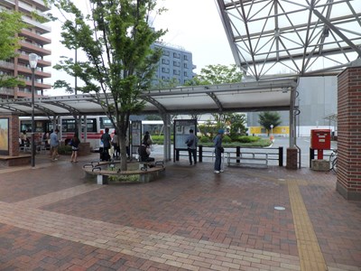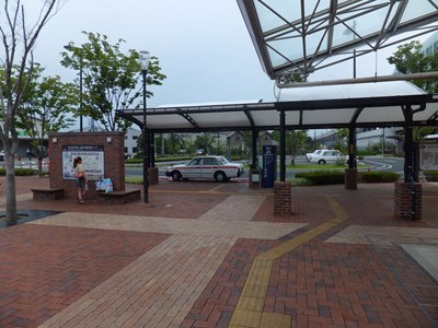 まちなか口(東口)はこの駅の中心となる出入口で,駅前には広場を挟んで左右にタクシー乗り場とバス乗り場が設置されています。