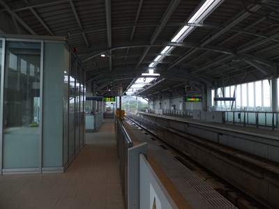 相対式2面2線の線路配置を持つ高架駅で,新大牟田の周辺がちょうど市街地の東端です。駅構内には地元の祭り「大蛇山」の山車が展示されていま
