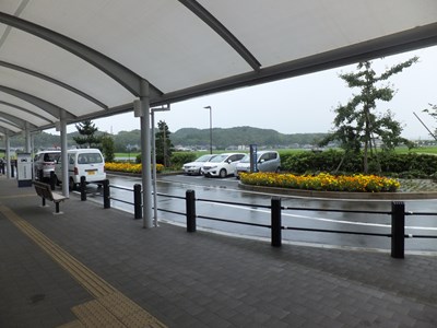 南口は玉名駅や市街地に近い側の出入り口で,パークアンドライド用の大きな駐車場やバス・タクシー乗り場などが設置されています。駅前には家電量販店と