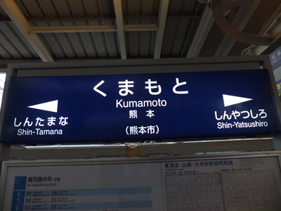 折り返し列車もある主要駅なので,島式2面4線の線路配置です。ホームドアは熊本のみほかの駅とは違う色が採用されています。
