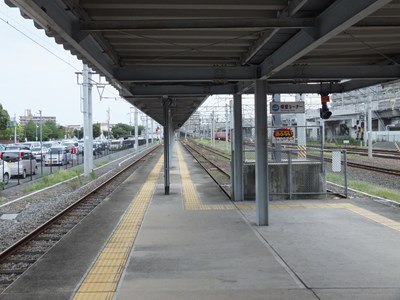 1番線(写真右側)は駅舎に隣接しているホームで,下り列車が主に発着します。1番線の向かいは3番線ホームです。