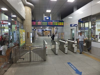 南口は新幹線と鹿児島線が斜めに交差する地点に設置された出入り口です。新幹線から鹿児島線側の西口へ行くときには南口を通って鹿児島線の駅構内に入る必