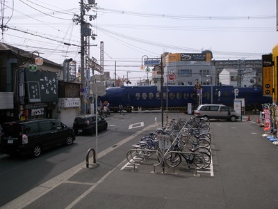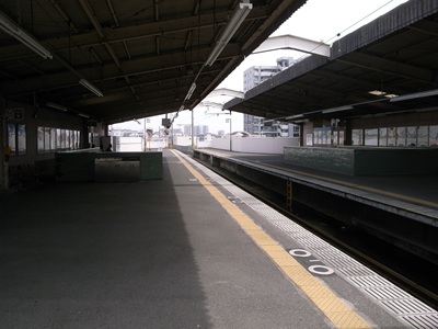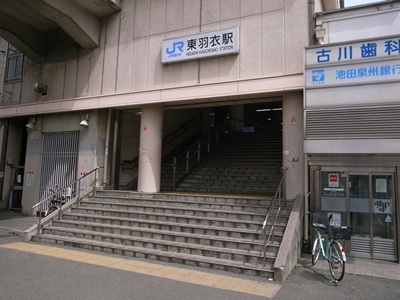 [ 東羽衣駅 ひがしはごろもえき ] 大阪府高石市 阪和線と南海線が唯一のりかえられるのがこの東羽衣駅で、この駅のすぐ近くには南海の羽衣駅があります。元の駅名は「阪和浜寺」という駅の北西にあるレジャー施設、浜寺公園を意識した駅名でしたが(このころ、南海や阪堺といった路線が浜寺公園への輸送を巡って争っていました)、南海への合併の際に山手羽衣駅、国有化の際に東羽衣駅という風に改称されていきました。 高架線上の駅で、単式ホーム2面が1本の線路を挟んで2面並ぶ相対式2面1線の線路配置ですが、線路の終端側で2つのホームは繋がっていません。改札などはホームと地面の間の中2階くらいのフロアにあり、駅前には南海電鉄の線路があります。 |