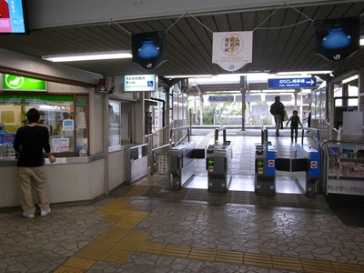 利用客が多いため窓口は有人で、改札も3列用意されています。
