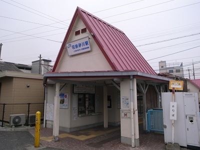 そういう経緯もあってか、和泉砂川駅は島式2面4線の追い越し可能駅で、駅の東西に2つ、小さな古い駅舎があります。東口にある駅舎は三角屋根が特徴で、これは阪和電鉄の駅舎でよく使われた様式だったようです。