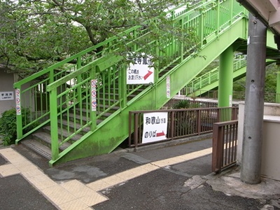 天王寺方面ホームへは緑色の跨線橋が通じています。