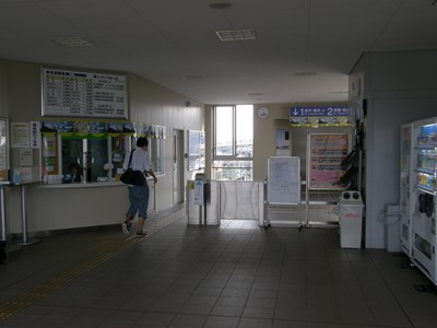 橋上駅舎で、駅の出入口は赤い屋根が特徴です。