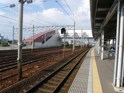 ホームの西側まで金沢貨物ターミナル駅の線路が伸びています。