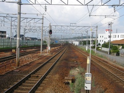 駅の金沢方には金沢貨物ターミナル駅と金沢総合車両所が広がっていて、金沢駅までいくつもの線路が複雑に敷かれています。