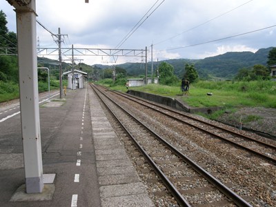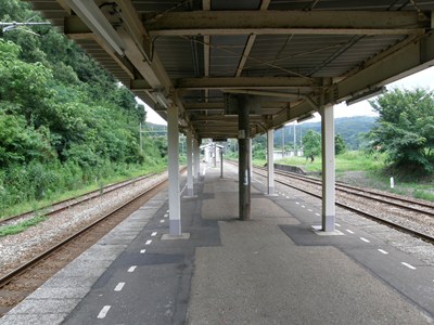 島式1面2線の駅で、駅舎は線路よりも1段高いところにあります。かつては貨物も扱っていたようですが、現在は無人駅となっています。