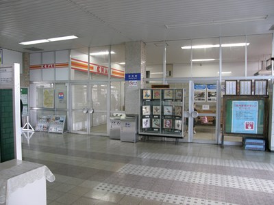 駅舎内には大きな待合室にあり、その中ではコンビニが営業しています。改札は有人で、1列しかありません。