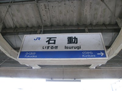 駅舎は国鉄の駅に多い直線的なデザインで、駅名はかなり目立たないところに書かれています。