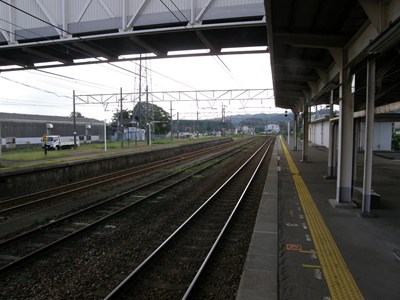 2面3線のJR型配線ですが、島式ホームには上り列車しか発着しない変則型です。